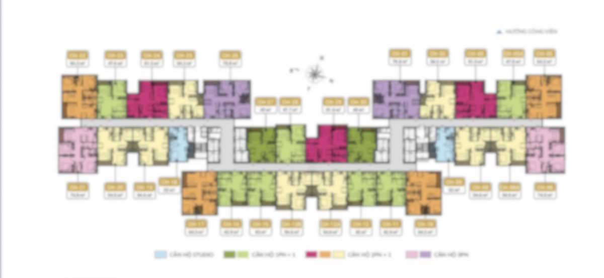 Trên các tầng điển hình, mặt bằng căn hộ TIG Tower được bố trí xoay quanh lõi thang máy và hành lang giữa, hạn chế tối đa góc chết. Phần lớn căn hộ đều có mặt thoáng rộng, đón ánh sáng tự nhiên, phù hợp để ở lâu dài hoặc khai thác cho thuê. Diện tích dự kiến dao động khoảng 57 – 100 m², chia thành nhiều loại hình linh hoạt cho 1 – 2 phòng ngủ.