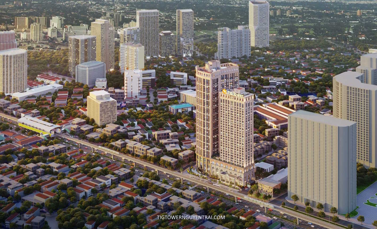 - TIG Tower tọa lạc tại số 108 Nguyễn Trãi, phường Thượng Đình, quận Thanh Xuân – một trong những trục giao thông huyết mạch kết nối lõi trung tâm với khu phía Tây Hà Nội.